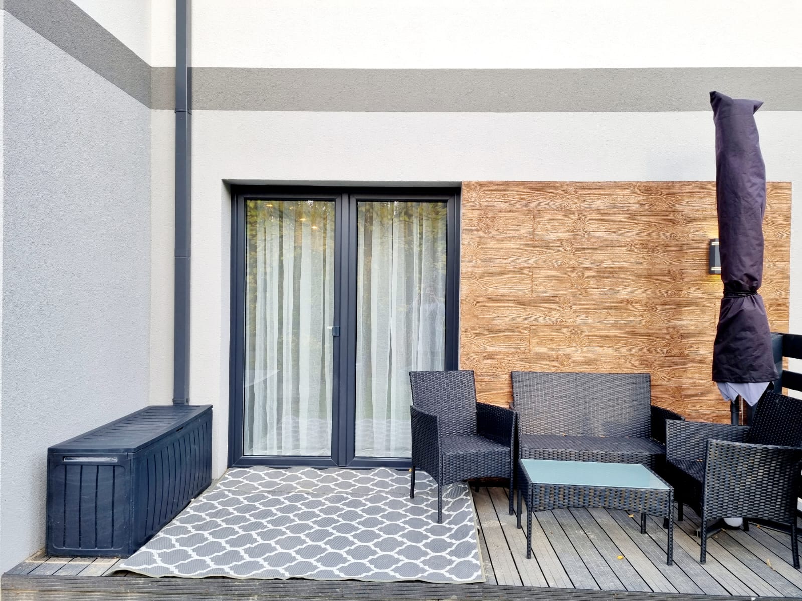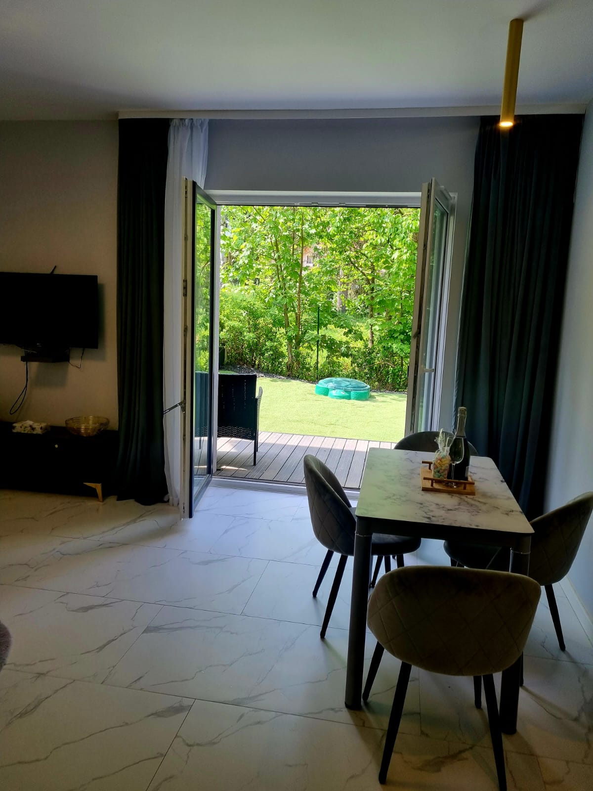 Bezpośrednio z apartamentu wyjście na ogrodzony taras.